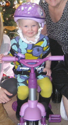 She was so excited that we couldn't get her off of it. She opened the rest of her presents while sitting on the bike: