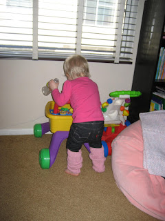 And last but not least, some pictures of her this afternoon wearing her awesome legwarmers made by Auntie Jennifer: